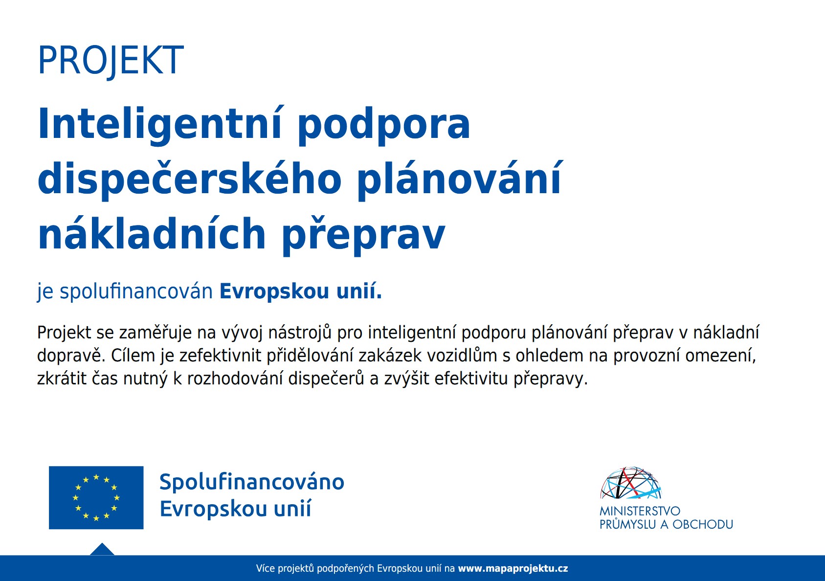 Projekt s názvem: Inteligentní podpora dispečerského plánování nákladních přeprav